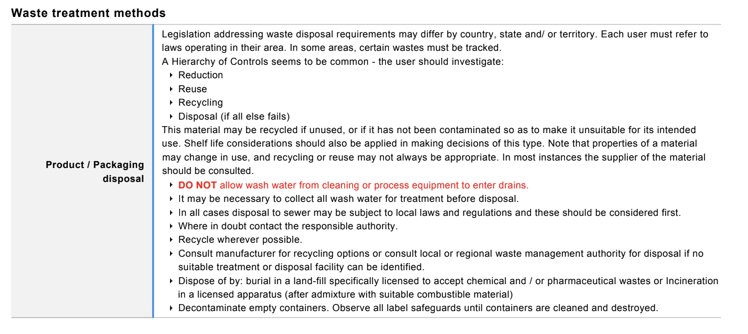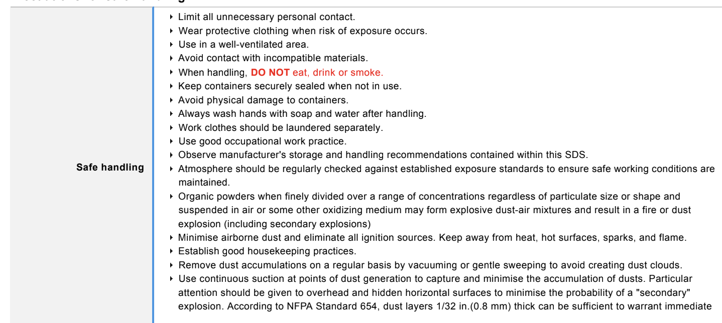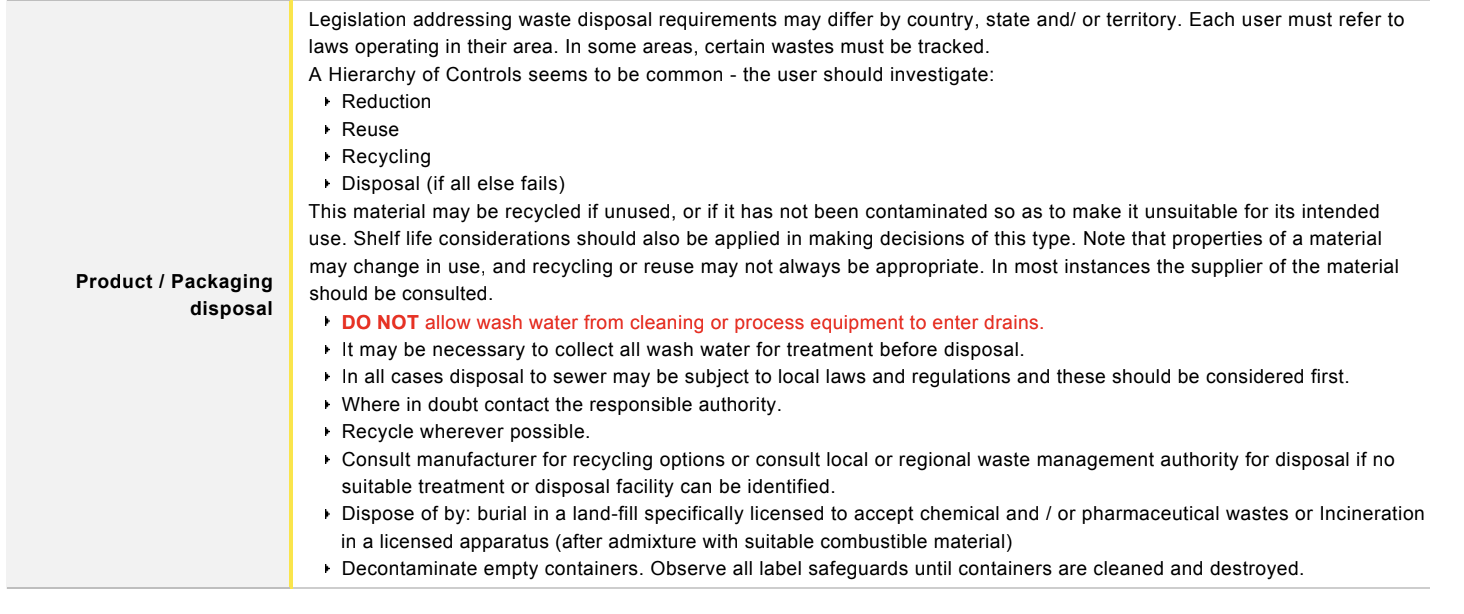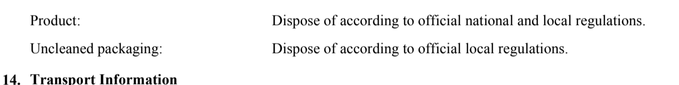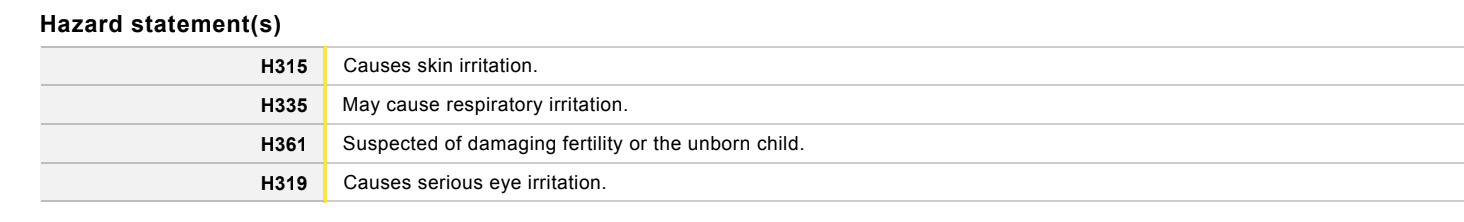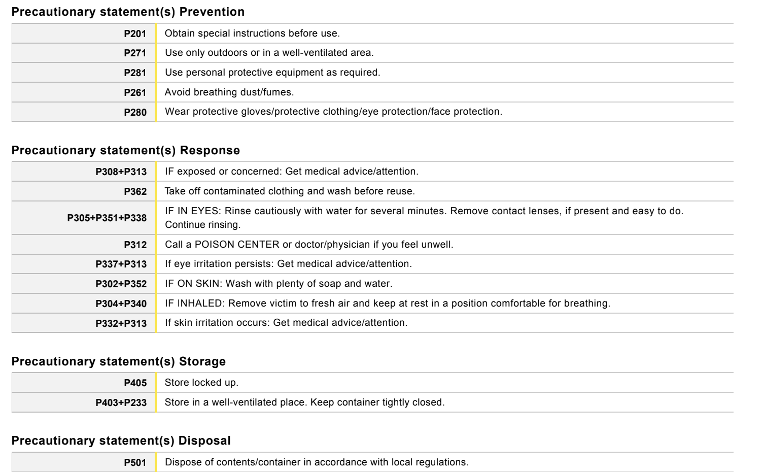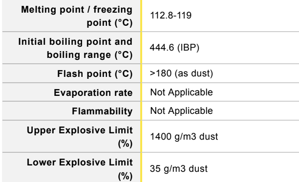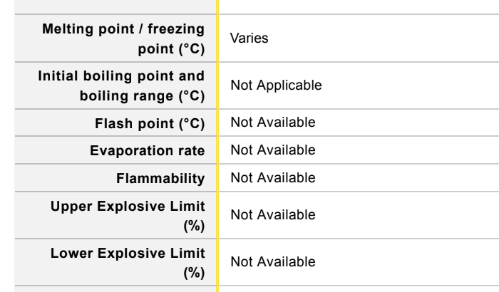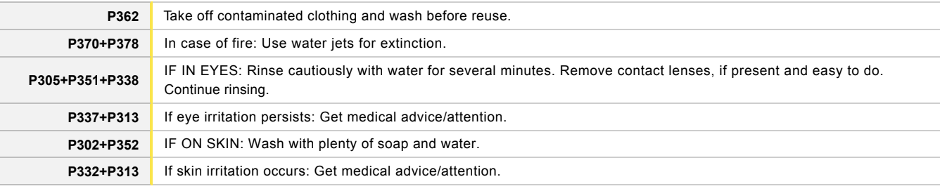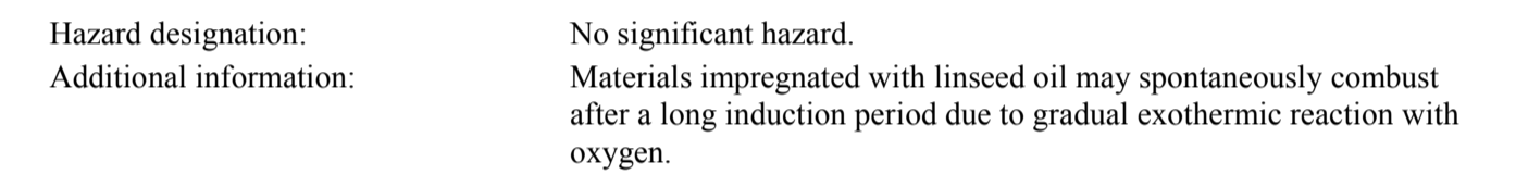 Hazard statements, flashpoints, combustion points, interactions, etc.