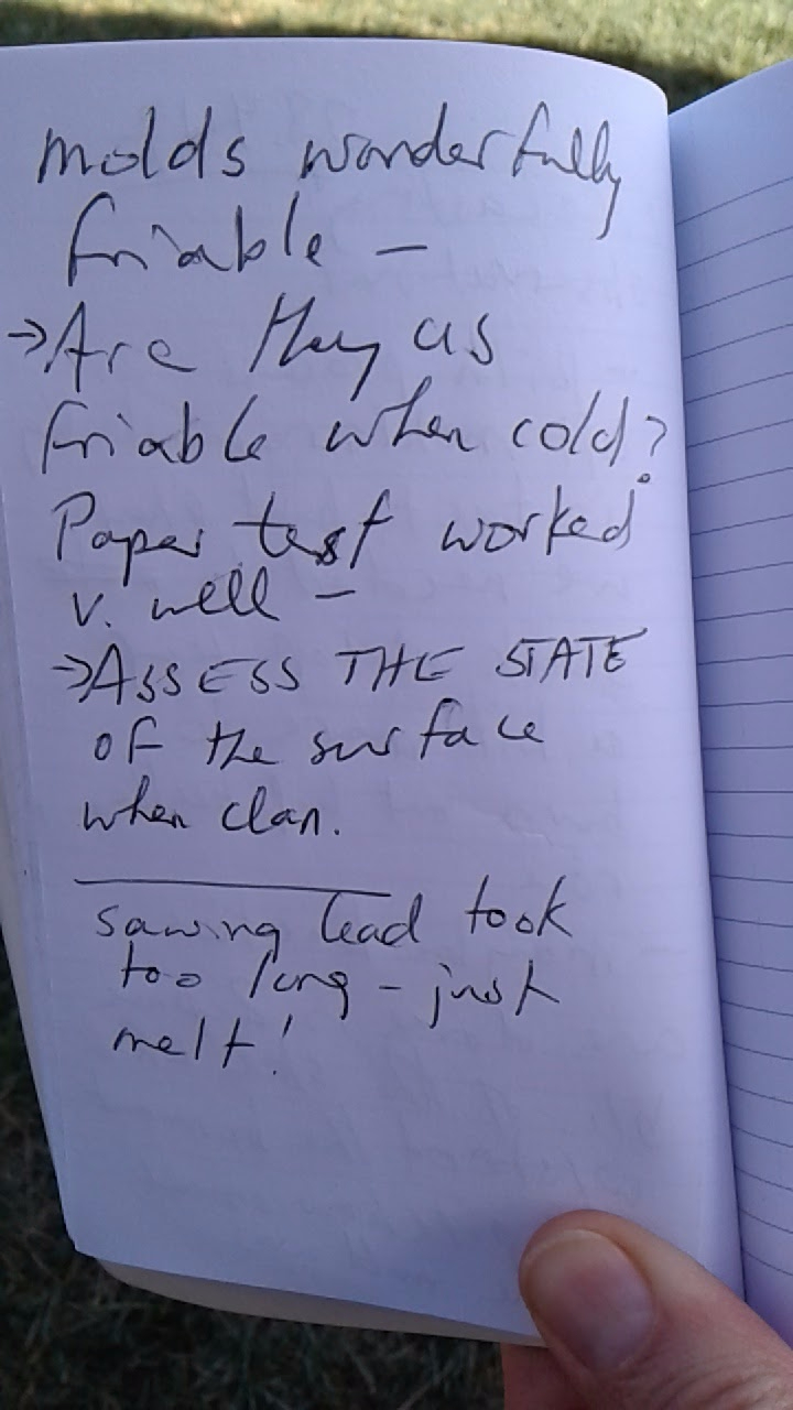 Small flower = less good friability (ummolded PHS/NJR? 1.5 hrs after pour) (thick, quick-setting wet plaster)
