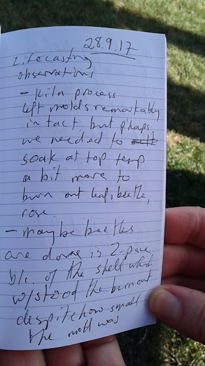2:15 am Kiln door opened to see if blue sprues were melting. Two or three drops visible