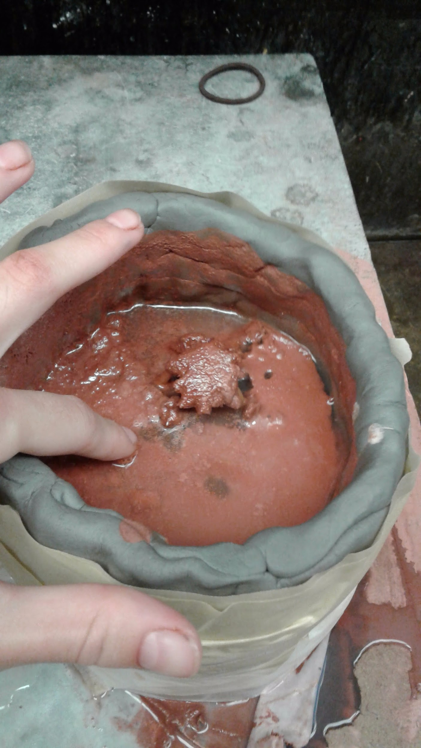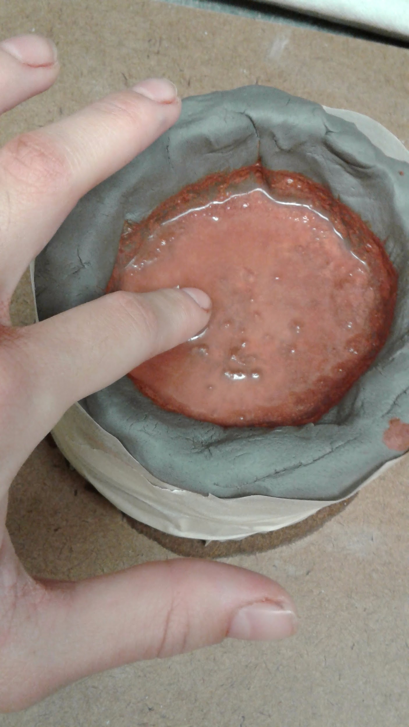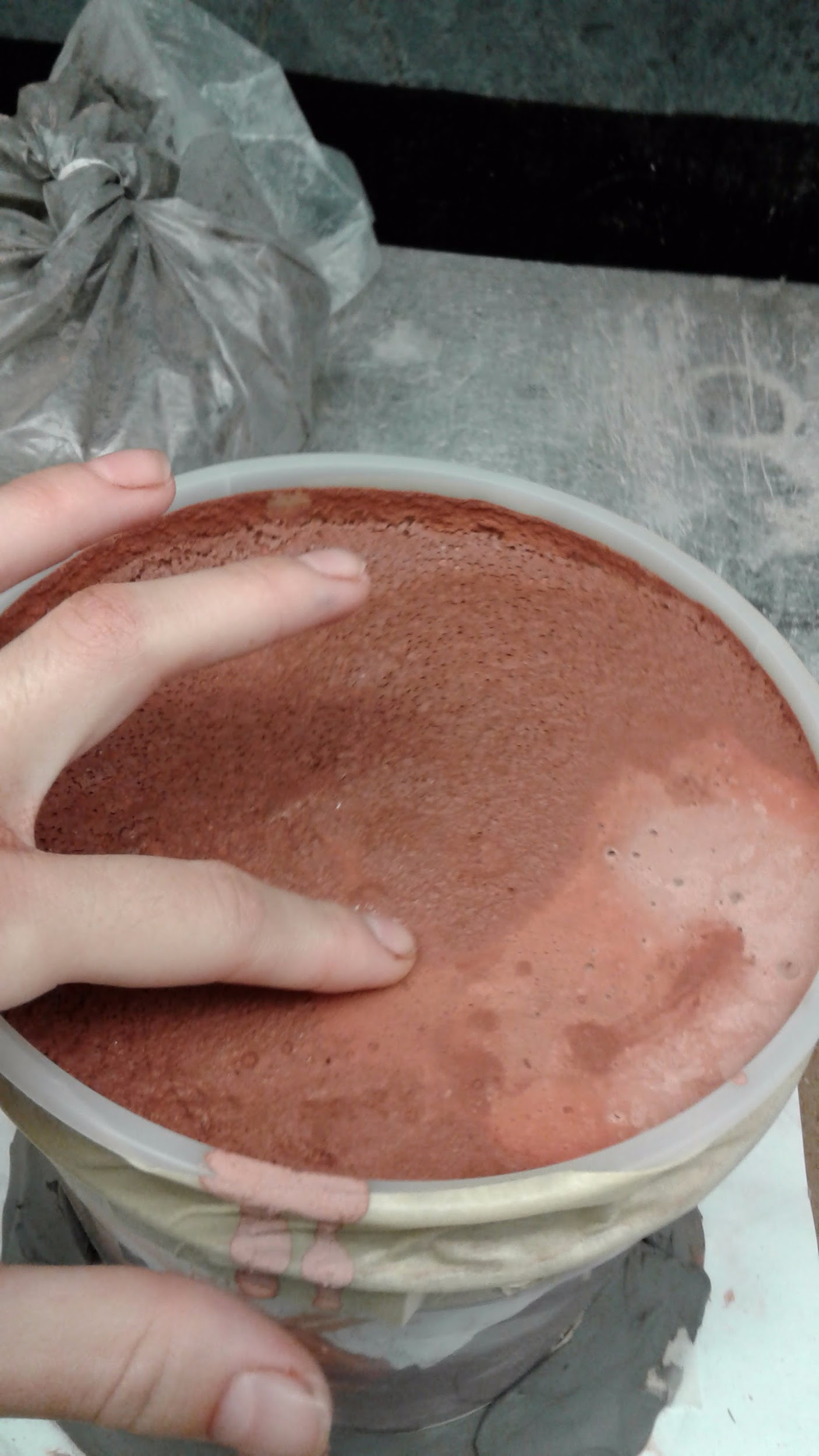 At ~9:30am, Naomi gently touched the top of each mold. All are quite solid but also obviously quite wet - retaining water.